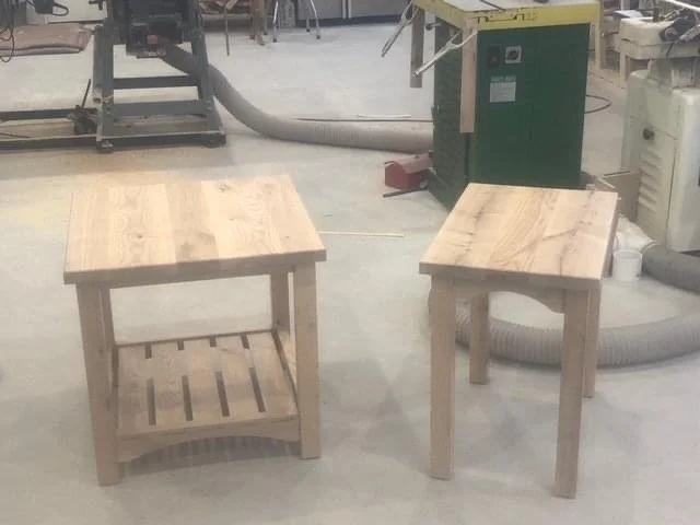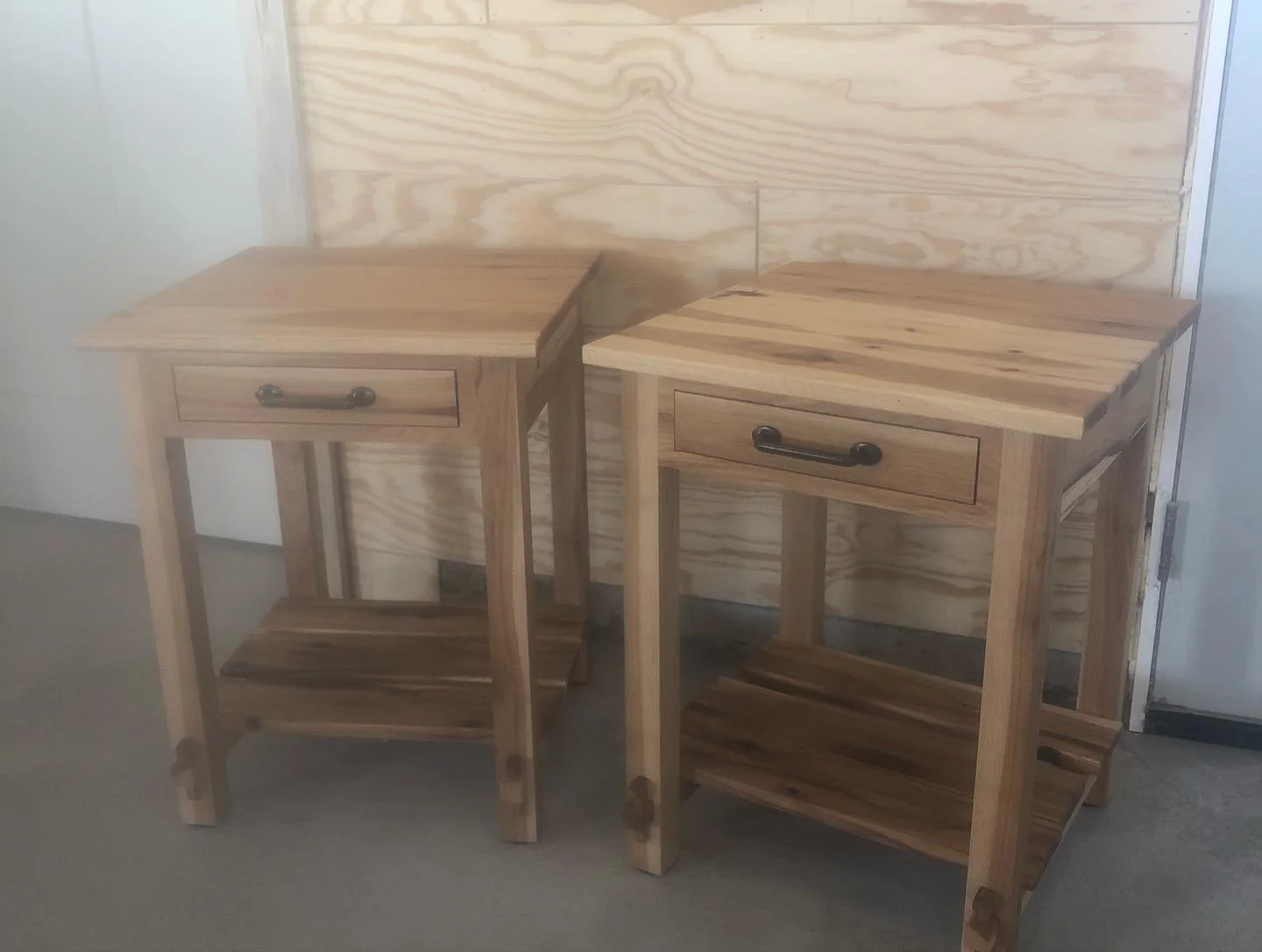 These hickory night stands have just the right amount of rustic feel. The through tenons with hand cut wedges finishes this off nicely.