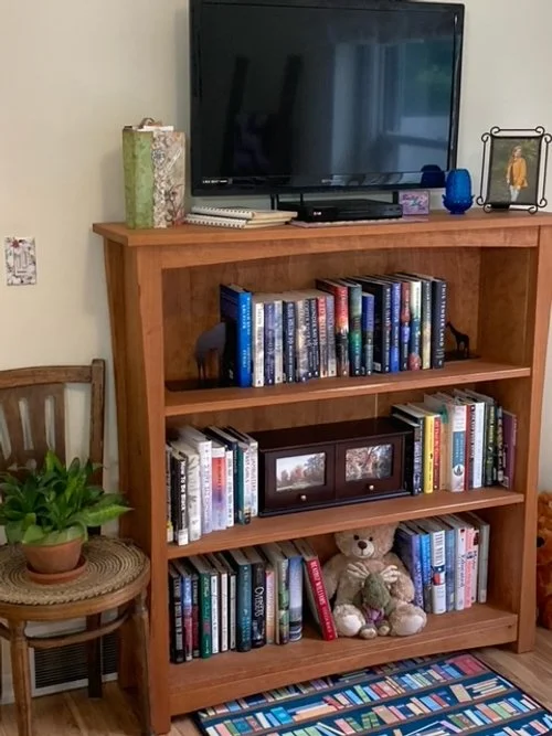 This bookcase matches the blanket chest with the same curved lines and elegant feel of cherry with a natural finish.