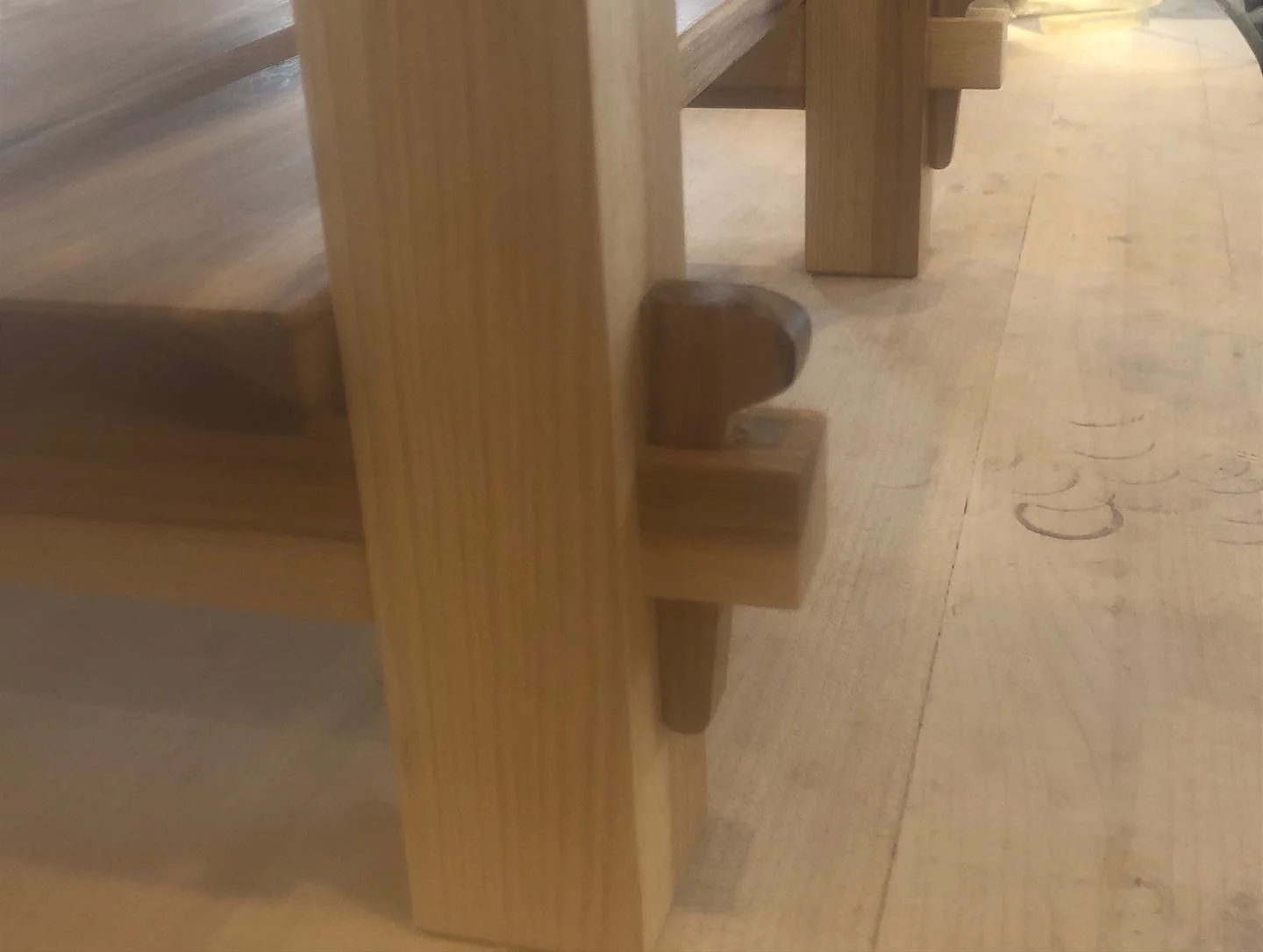 These white ash tables show of the beautiful grain with a simple clear finish. The through mortice and tennon give a hand crafted touch.