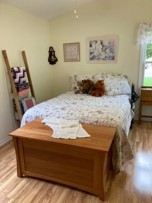 The subtle curved lines of this cherry chest give it that something extra. With soft close lid and natural oil finish the cherry will darken with age.